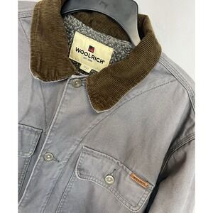 Woolrich Canvas Sherpa Lined Gray Chore Coat Button Up Jacket Size L