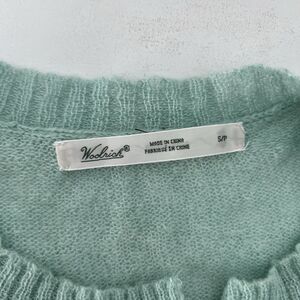 Woolrich Cardigan Sweater Womens Small Blue Owl Mohair Wool Knit Button Pockets