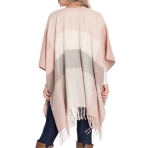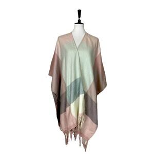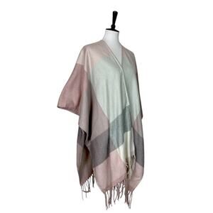Woolrich Cozy Blanket Scarf Wrap Open Front Cream Pink Plaid Women One Size