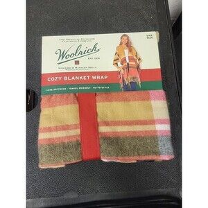 Woolrich Cozy Blanket Wrap Poncho Scarf Soft Plaid Tan Red Black One Size New