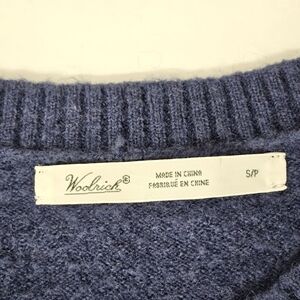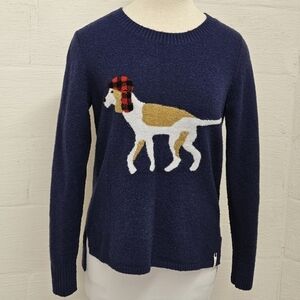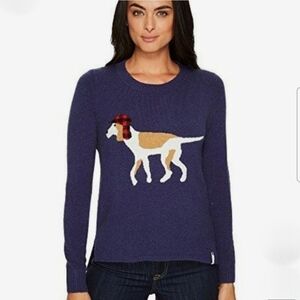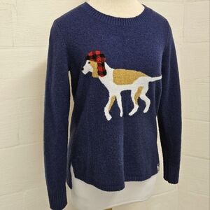 Woolrich Crewneck Hunting Dog Sweater in Blue and White Wool Blend Size Small