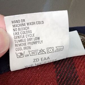 Woolrich Deep Navy Lined Button Up Flannel Type Shirt Size L. This heavyweight flannel has red plaid on inside and is in great used condition.