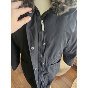 This is such an amazing coat. It has a coyote trim that can be removed. Inside and outside pockets . This is in excellent condition and comes from a clean and smoke free home. It's not too heavy but is definitely a thicker coat. This is amazing in freezing temperatures. Please see photos for additional details and measurements.