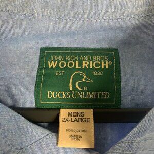Woolrich Ducks Unlimited Shirt Mens 2XL Chambray Hunting Outdoors Vintage