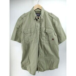 Woolrich Elite Series Vented Shirt Button Up Mens Large Short Sleeve Cotton Sage