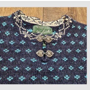 Woolrich Fair Isle Lambs Wool blend Sweater Heart Clasps closure