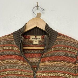Woolrich Fair Isle Sweater Woman Medium Full Zip 100% Cotton Retro Classic Work