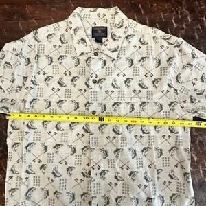 Woolrich Fishing Short Sleeve Shirt L Bass Fish Rod Print Button Up Cotton