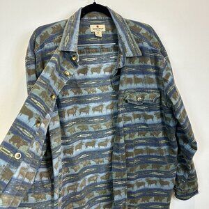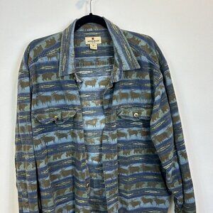 Woolrich Flannel Elk Bear Moose Print Mens 2XL Outdoor Nature Button Down
