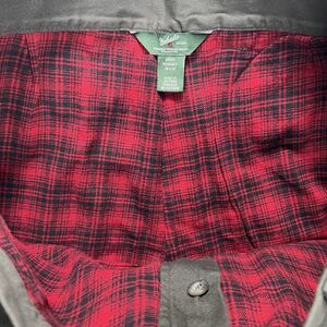 These Woolrich Woolen Mills pants feature a rugged cotton twill shell with a warm red-and-black plaid flannel lining. Designed for outdoor comfort and cold-weather durability, they offer a timeless field-pant silhouette with front slant pockets, rear buttoned pockets, and a mid-rise fit.