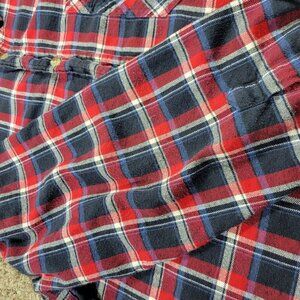 Woolrich Flannel Shirt Mens 2XL Plaid Blue Red Button Up Long Sleeve Outdoors. Has some light pilling throughout