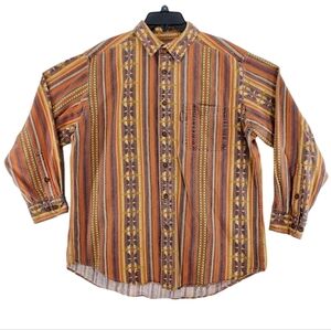 Woolrich Flannel Shirt Mens L Orange Yellow Stripe Persimmon Aztec Ombre L/S