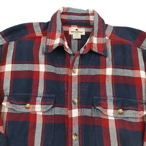 Woolrich Flannel Shirt Mens Large Navy Red Plaid Cotton Long Sleeve Heavyweight