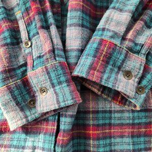 100% cotton Woolrich flannel with Grey, Blue, & Red colors. All photos take in natural light, please review for condition.
