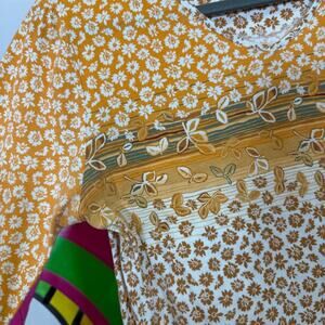 Woolrich, Floral Print Top in Yellow and White, 3/4 Sleeve. Size Medium.