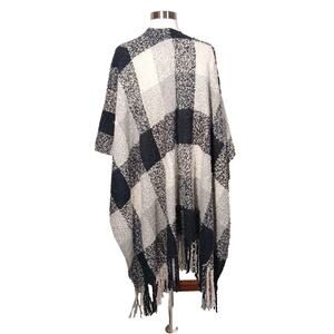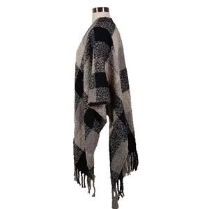 Woolrich Polyester Fleece Wrap Shawl Cape Fringe Black Gray Plaid Poncho One Size