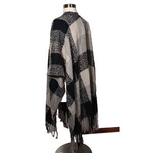 Woolrich Polyester Fleece Wrap Shawl Cape Fringe Black Gray Plaid Poncho One Size