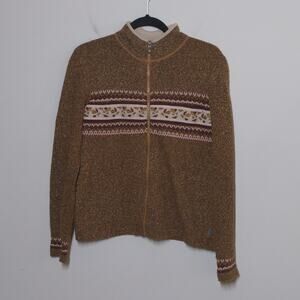 Woolrich Full Zip Cardigan with Leaf Embroidery in Fawn Heather - Size S - GUC