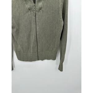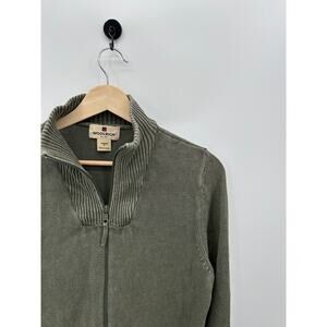 Woolrich Full Zip Sweater Women Medium Olive Green Ramie Cotton Lightweight Knit