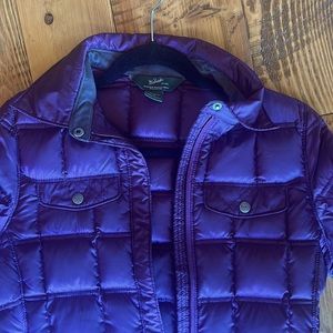 Excellent condition, like new. Light weight but warm! Smoke free and pet free home, see pictures for color in sun vs natural light inside (looks more purple than burgundy in person). Worn a couple of times, too slim fitting for me!