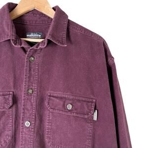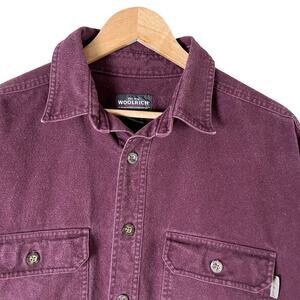 Woolrich Heavy Cotton Flannel Button Down Workshirt Jacket in Burgundy, Size Large