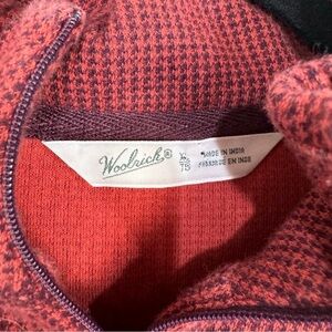 Woolrich Houndstooth Red Quarter Zip Pullover 100% Cotton Base Layer Winter