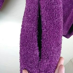 Very warm and soft "Wineberry Heather" color. There's one hidden pocket on the left side. Adjustable waist.