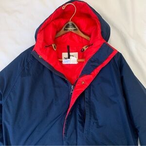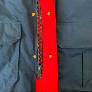 Woolrich Jacket Men L Blue Solid Parka Puffer Red Lined Hooded VTG USA Goretex