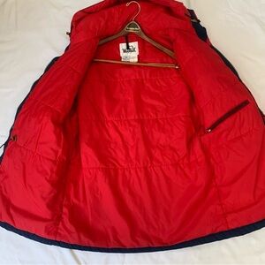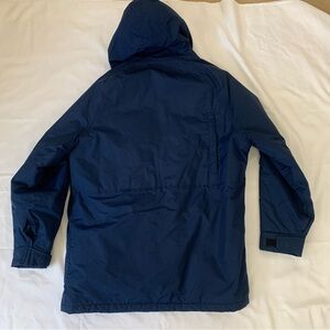 Excellent condition. Woolrich Jacket Men L Blue Solid Parka Puffer Red Lined Hooded VTG USA Goretex