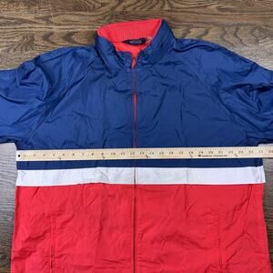 Woolrich Jacket Mens Large Blue Red Colorblock Hooded Windbreaker Full Zip 4117