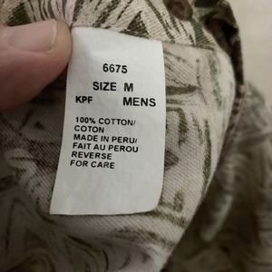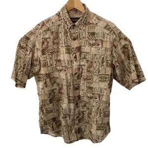 Woolrich John Rich Shirt Mens M Short Sleeve Button Cotton Tan Tiki Fish Print