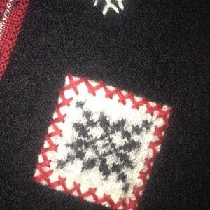 Vest has button front and embroidered patchwork of snowflakes, in excellent condition.