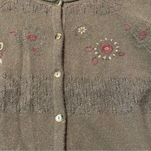 Women's Woolrich Lambs Wool Brown Embroidered Button Up Sweater Size XL Petite