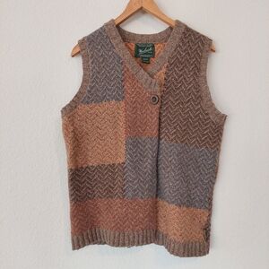 Woolrich Lamb's Wool Colorblock Sleeveless Button Sweater Vest Size Large. Goid pre-owned condition