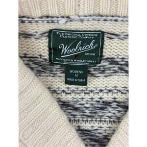 Woolrich Sweater Chuncky Cardigan 3 Button Hip Length Womens Medium Ivory Gray