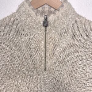 Woolrich Lambswool Sweater Womens Large Ivory 1/4 Zip Lagenlook Cream Ramie Blend Neutral