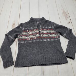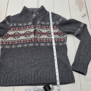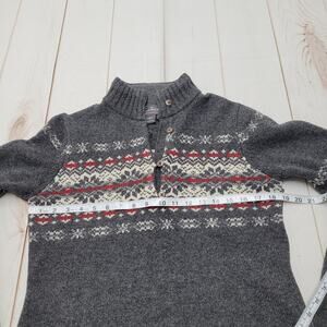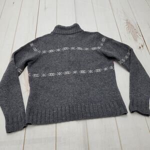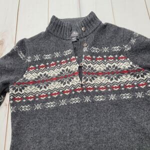 Lovely Woolrich "Onyx Heather" quarter button pullover! Lambswool knit with a snowflake print. In excellent condition, size small.