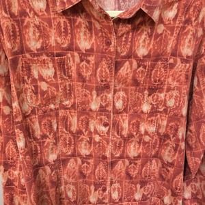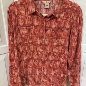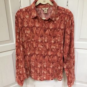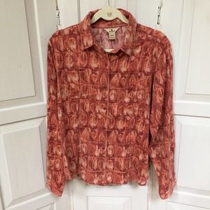 Woolrich rust long sleeve button down shirt with 2 front pockets.