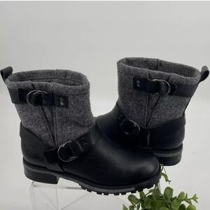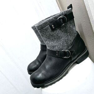 Woolrich Leather Baltimore Harness Wool Moto Booties Double Buckles Lug Sole