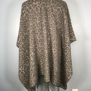 Woolrich Leopard Print Fringe Poncho Wrap One Size Polyester & Viscose Brown/Gra
