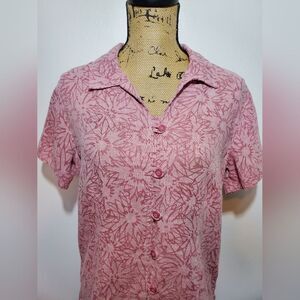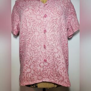 Woolrich Linen Blend Floral Button Down Blouse Size M