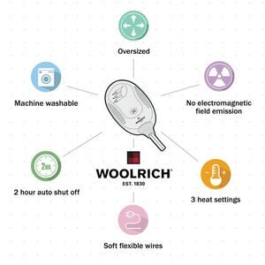 Woolrich Elect Electric Blanket Throw with 3 Heat Level Setting Controller 60x70" Grey The Woolrich heated throw utilizes state of the art Secure Comfort heated technology that adjusts the temperature of your throw based on overall temperature, spot temperatures and the ambient temperature of your room, ensuring a consistent flow of warmth. This unique technology also emits virtually no electromagnetic field emissions, so you can snuggle up with confidence. This throw is oversized, nearly a foot larger in the length and width compared to standard heated throws. The ultra soft faux mink fabric and the lofty berber reverse creates a cozy, comfortable throw. Features 3 heat settings and 2 hour auto shut off. This throw is machine washable for easy care.