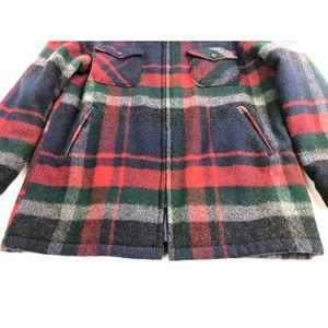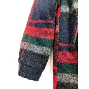 Woolrich Men Muti Plaid Collared Long Barn Coat Size L lined Vintage Made USA