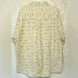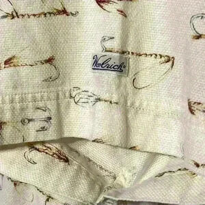 Woolridge men’s 100% cotton. Off White , 90s/Y2K, button-down, flyfishing, hook pattern, breast pocket, short sleeve, casual golf wear EUC. Ships from a smoke-free home. Size extra large.