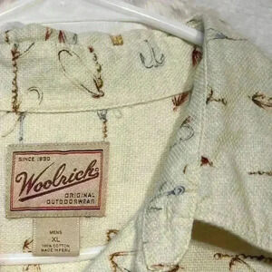 Woolrich Mens 90s/Y2K button down Flyfishing Hook Graphic Pattern XL Golf Wear