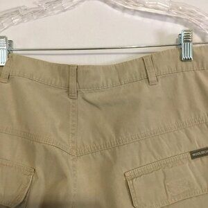 ITEM: Woolrich men's khaki cotton cargo hiking shorts.