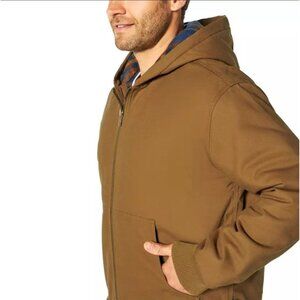 Woolrich Men's L Canvas Hooded Jacket Plaid Kangaroo Pocket Zipper Hoodie Brown