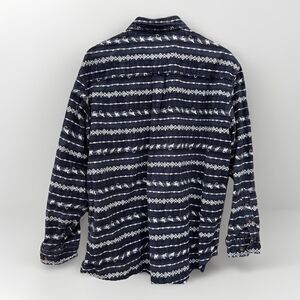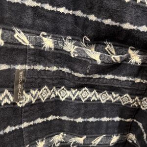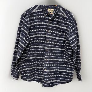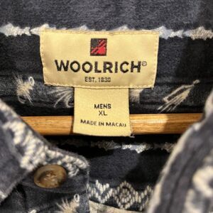 Woolrich Mens L Shirt Long Sleeve Button Up Deep Navy Flies Fly Fishing Flannel