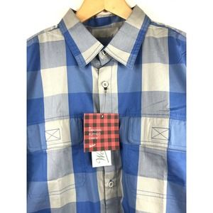 New with tags Men’s Woolrich “Keep It Moving” Short Sleeve Shirt in Limestone Check (Blue, Gray) original Buffalo check pattern, size Large.