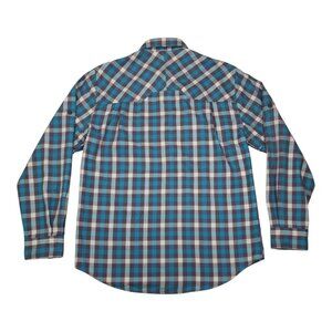 Woolrich Mens Long Sleeve ButtonUp Shirt Aqua Plaid Under Arm Gusset Sleeve Tabs
